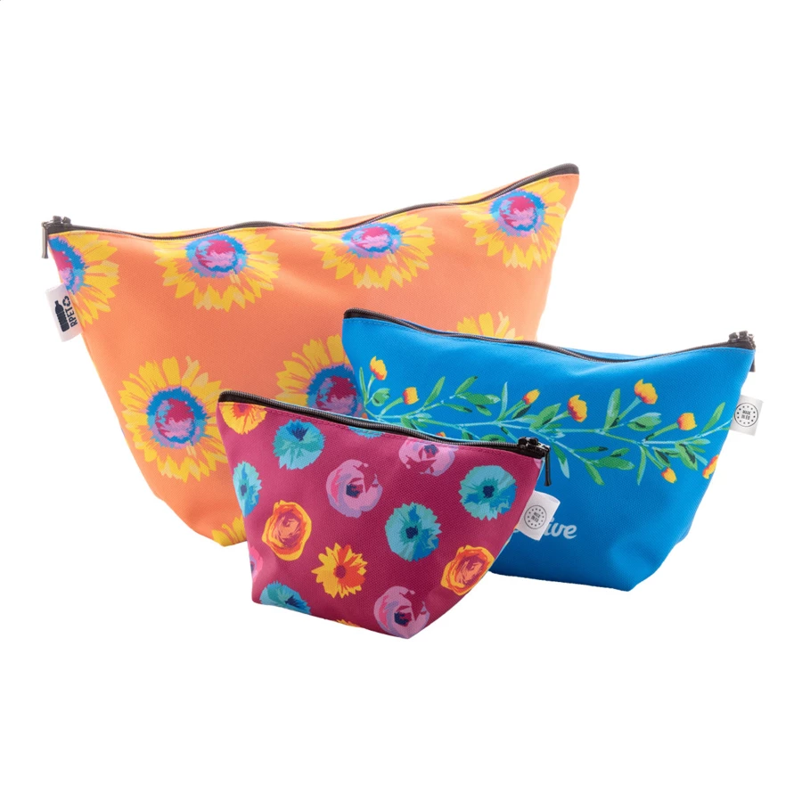 Personalizowana, kosmetyczka zapinana na zamek z poliestru 600D RPET. Z charakterystyczną metką RPET i nadrukowaną na całej powierzchni grafiką sublimacyjną. Min. Ilość: 50 szt.