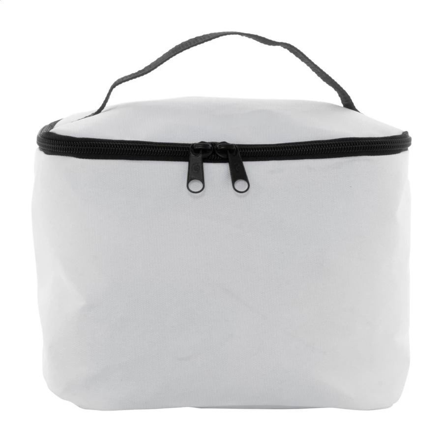 Personalizowana, zapinana na zamek kosmetyczka RPET z poliestru 600D RPET z uchwytem do przenoszenia. Z nadrukowaną grafiką sublimacyjną na całej powierzchni. Min. ilość: 50szt.