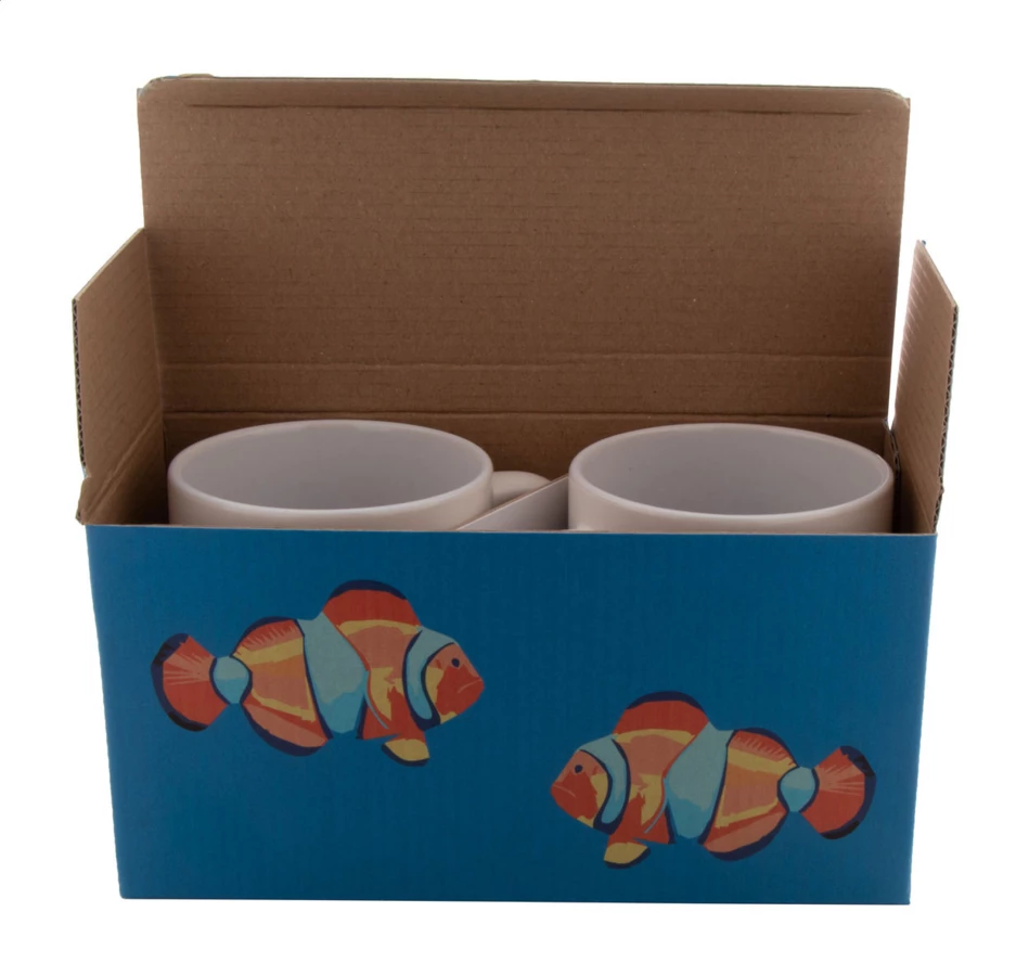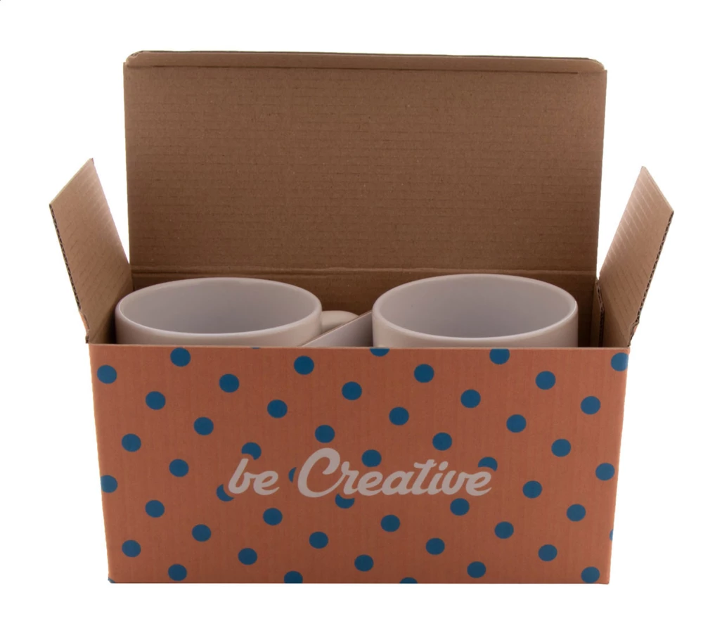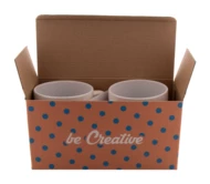 Personalizowane pudełko z tektury falistej z nadrukiem full kolor na 2 szt. kubków 300-350 ml. Min. ilość: 50 szt.