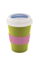 Personalizowany plastikowy kubek termiczny z podwójnymi ściankami, pokrywką do picia i silikonowym uchwytem. 300ml. Min. ilość: 50 szt.