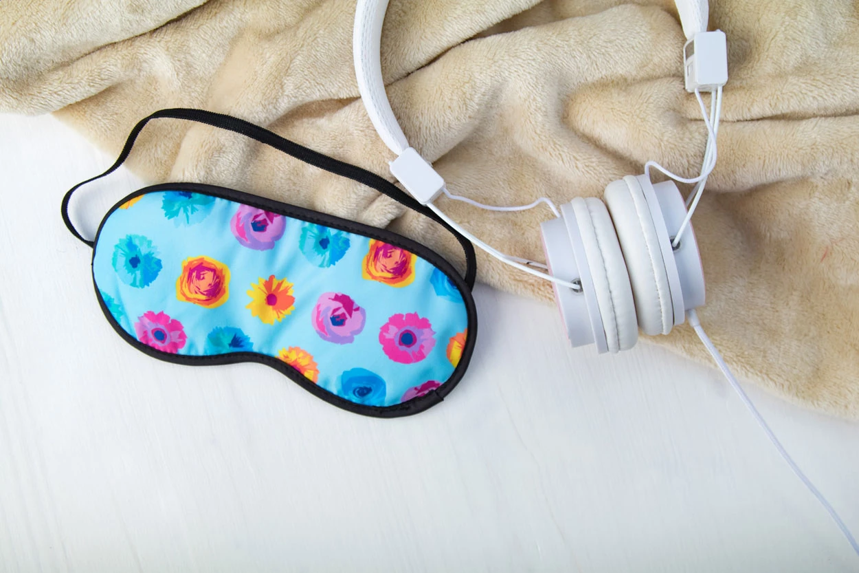 Personalizowana podróżna maska na oczy z poliestru (140 g/m²) wyściełana pianką, z czarną obwolutą i tasiemką. Z nadrukiem sublimacyjnym na całości. Min. ilość: 100szt.
