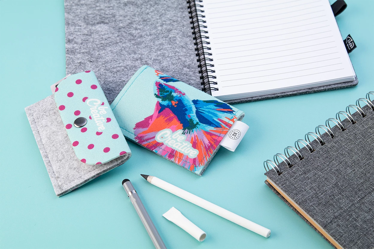 Personalizowana, filcowa torebka RPET z klapą i tyłem z full nadrukiem. Z charakterystyczną metką RPET. Cena zawiera nadruk sublimacyjny. Min. Ilość: 50 szt.