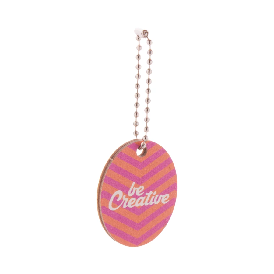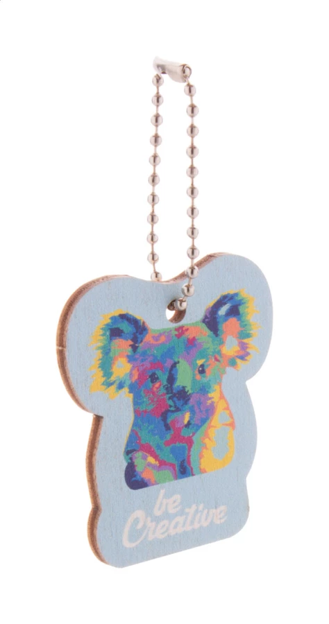 Personalizowany brelok ze sklejki brzozowej z kolorowym nadrukiem i metalowym łańcuszkiem. W indywidualnym kształcie - maksymalny wymiar: 45x45 mm. Cena zawiera nadruk UV LED z jednej strony. Min. ilość: 200 szt.