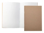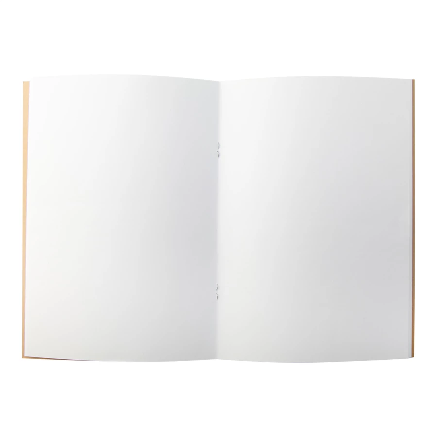 Personalizowany notes, z okładką z papieru kraft, z 32 czystymi kartkami z recyklingu, format A5. Cena obejmuje okładkę zewnętrzną z nadrukiem w full kolorze. Min. ilość: 100 szt.