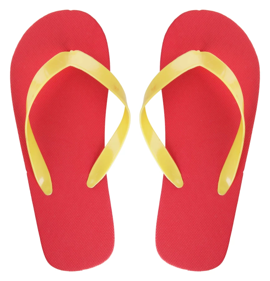 Personalizowane japonki z podeszwą PE i taśmą PVC. Produkt składany jest z dowolnej kombinacji kolorystycznej podeszw i pasków. Min.ilość: 50 par.