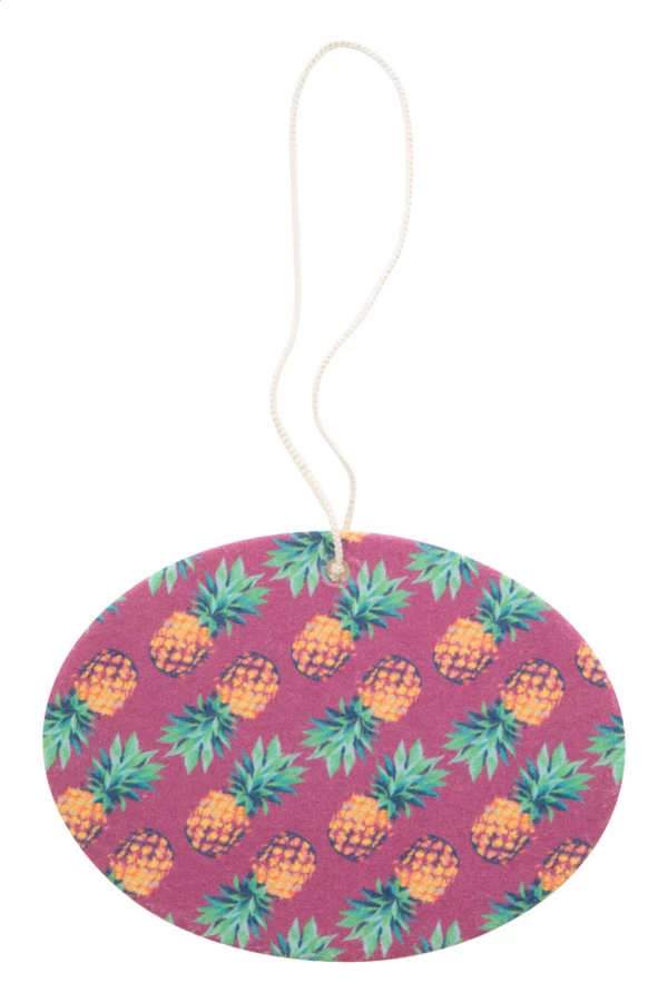 Personalizowany zapach do samochodu o indywidualnym kształcie i zapachu (egzotyczny, zielone jabłko, cytryna, nowy samochód, ocean, wanilia, luksus, mentol). Znakowanie do 4 kolorów CMYK po obu stronach. Min. ilość. 250 sztuk.