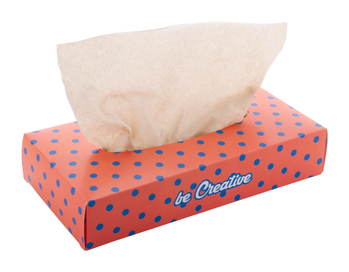 100 szt. 2-warstwowych chusteczek papierowych z recyklingu w dyspenserem. Cena obejmuje nadruk full kolor. Min. ilość: 100 szt.
