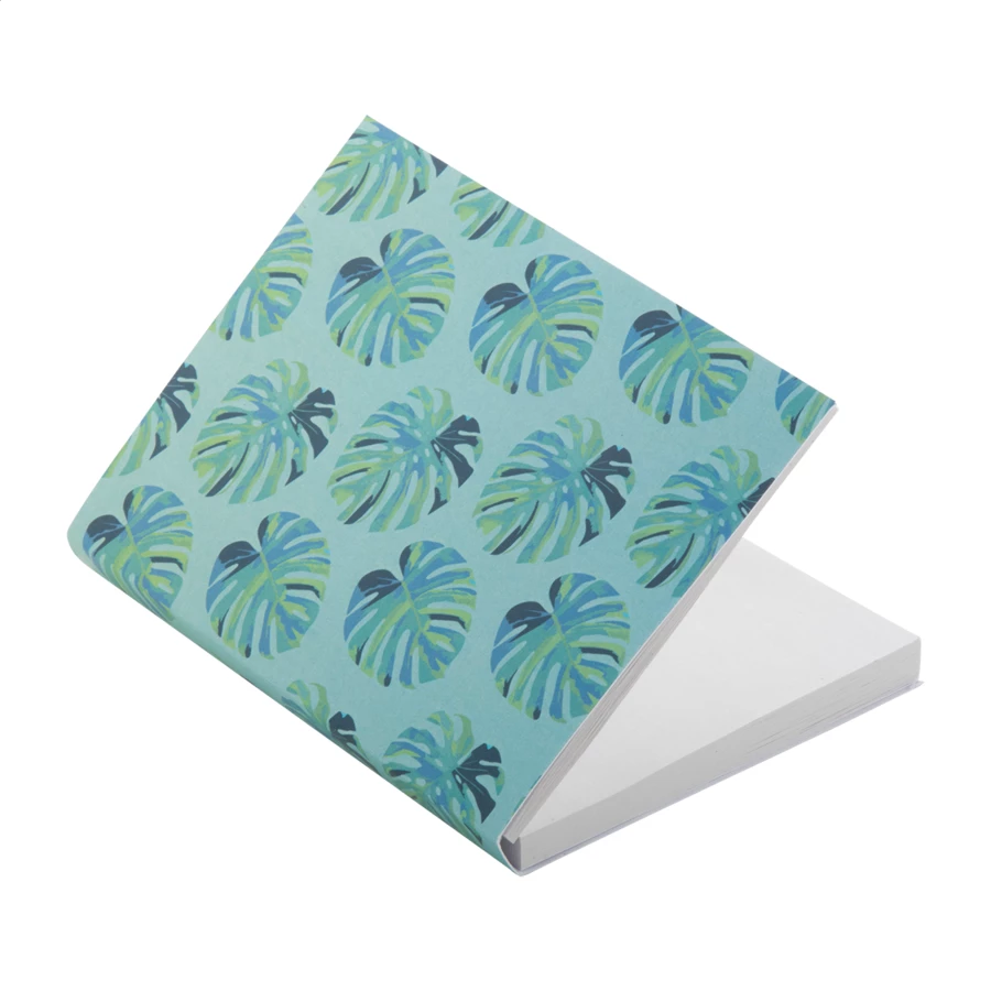Personalizowany notatnik z samoprzylepnymi karteczkami z okładką z papieru. Zawiera karteczki samoprzylepne z papieru makulaturowego w 2 rozmiarach (50 arkuszy 100x75 mm, 25 arkuszy 50x75 mm) i 100 plastikowych znaczników do stron w 5 różnych kolorach (44x12 mm). Cena obejmuje nadruk full kolor na okładce zewnętrznej. Min. ilość: 100 szt.