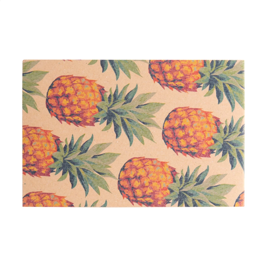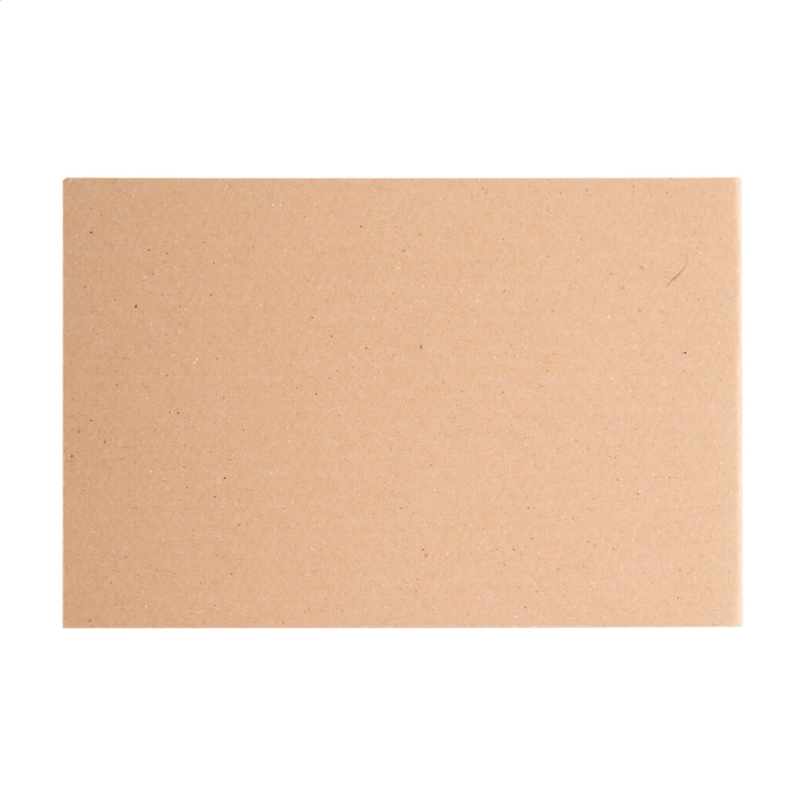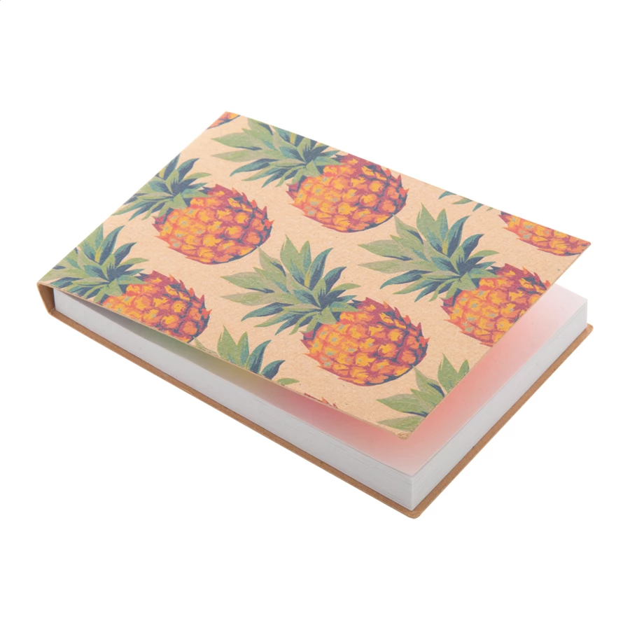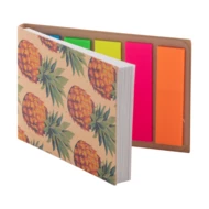 Personalizowany notatnik z samoprzylepnymi karteczkami z okładką z papieru kraft z recyklingu. Zawiera 50 karteczek samoprzylepnych w rozmiarze 50x75 mm i 100 plastikowych znaczników do stron w 5 różnych kolorach (44x12 mm). Cena obejmuje nadruk full kolor na okładce zewnętrznej. Min. ilość: 100 szt.