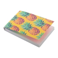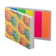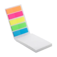 Personalizowany notatnik z samoprzylepnymi karteczkami z okładką z papieru. Zawiera 50 karteczek samoprzylepnych w rozmiarze 50x75 mm i 100 plastikowych znaczników do stron w 5 różnych kolorach (44x12 mm). Cena obejmuje nadruk full kolor na okładce zewnętrznej. Min. ilość: 100 szt.