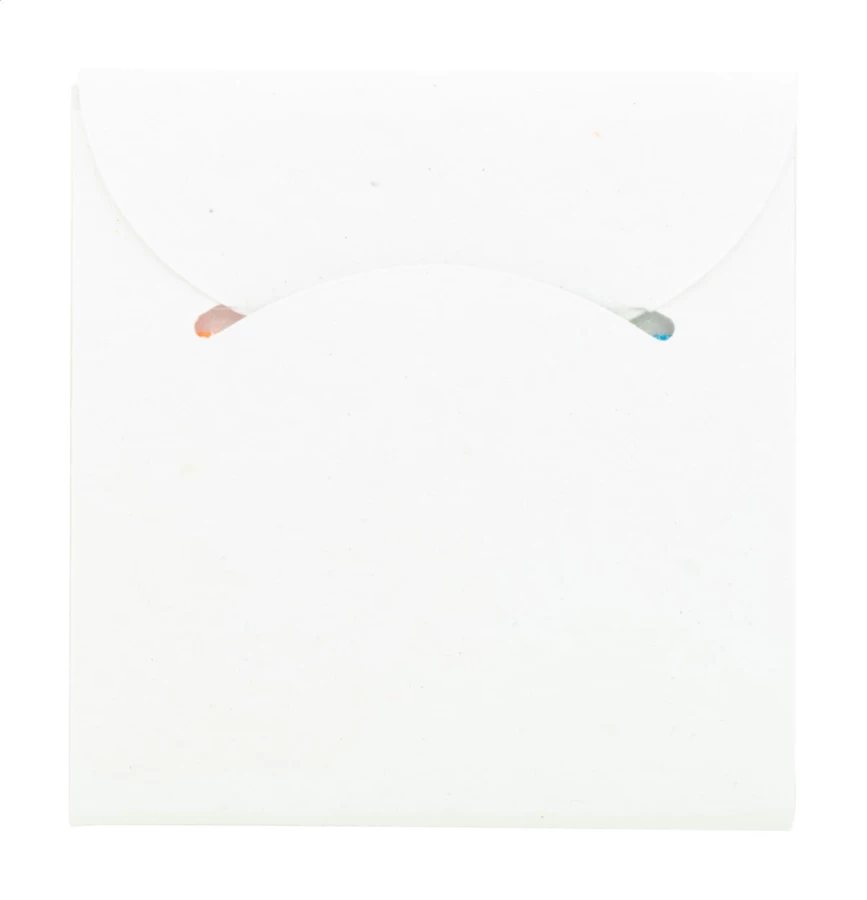 Personalizowany notatnik z okładką z papieru nasiennego wykonany na zamówienie. Zawiera 50 arkuszy samoprzylepnych karteczek z papieru pochodzącego z recyklingu (75×75 mm) i 100 plastikowych zakładek w 5 różnych kolorach (44×12 mm). Cena obejmuje okładkę zewnętrzną z nadrukiem w full kolorze. Min. ilość: 100 szt. Z różnymi nasionami dzikich kwiatów.