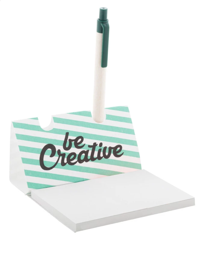 Wykonany na zamówienie, uchwyt na długopisy z papieru nasiennego z karteczkami samoprzylepnymi. Zawiera 50 arkuszy samoprzylepnych karteczek z papieru pochodzącego z recyklingu (100×75 mm). Cena obejmuje nadruk w full kolorze na górze. Min. ilość: 100 szt. Z różnymi nasionami dzikich kwiatów.