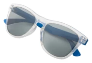 Personalizowane, plastikowye okulary z filtrem UV 400. Produkt składany z wybranym kolorystycznie oprawek i zaucszników. Min.ilość: 50 szt.