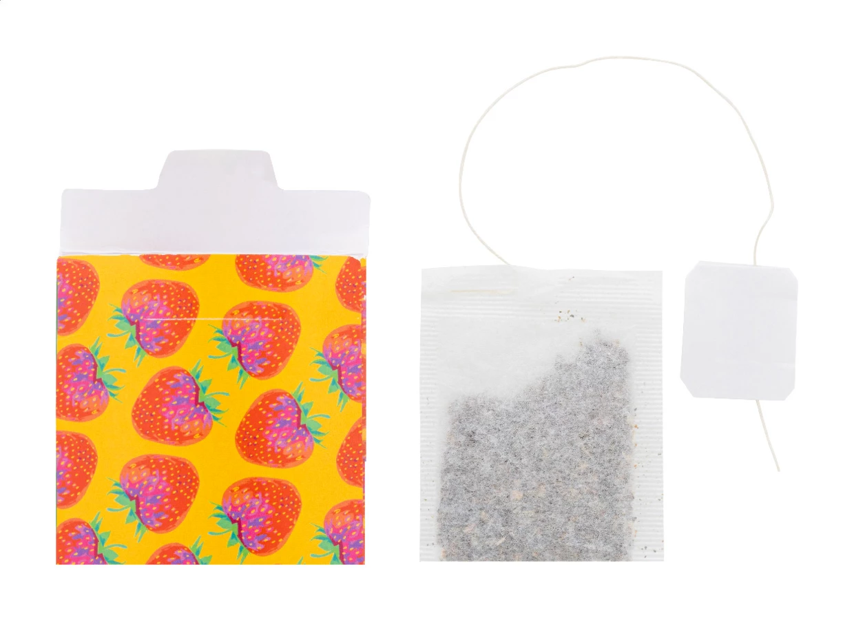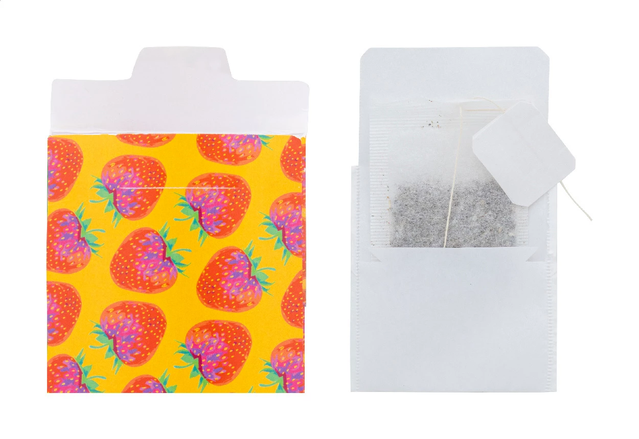 Torebka herbaty pakowana pojedynczo w indywidualnie zadrukowaną, kolorową kopertę papierową. Zawiera 1,2 grama (1 torebka) herbaty. Min. ilość: 100 szt.