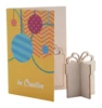 Personalizowana, papierowa karta świąteczna z dowolną grafiką po obu stronach i drewnianą ozdobą do składania. Zawiera kopertę C6. Min. zamówienie: 100 szt.