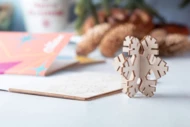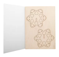 Personalizowana, papierowa karta świąteczna z dowolną grafiką po obu stronach i drewnianą ozdobą do składania. Zawiera kopertę C6. Min. zamówienie: 100 szt.