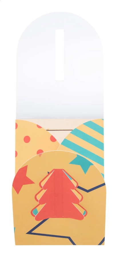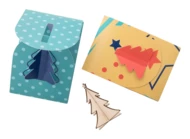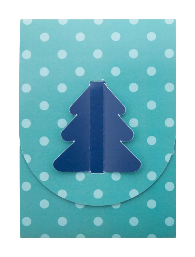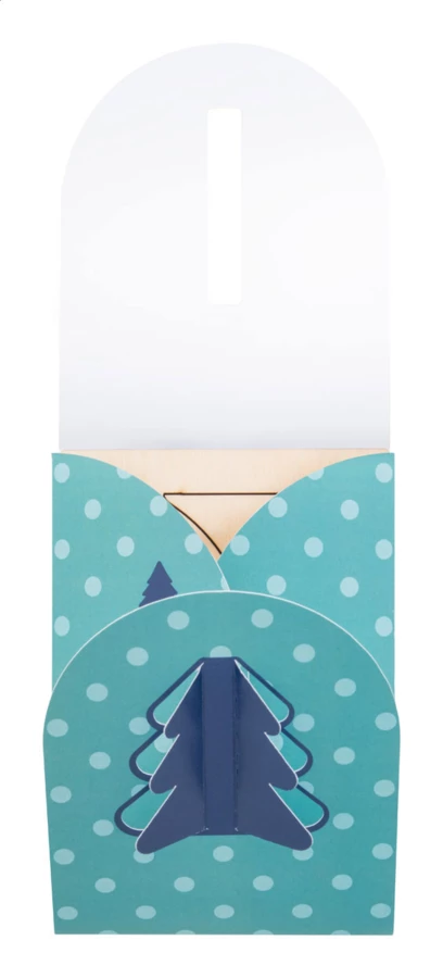 Personalizowana, składana papierowa kartka świąteczna z własną grafiką i wyciętym kształtem choinki na okładce, zawiera drewniane puzzle w kształcie choinki. W zestawie koperta pocztowa C6. Min. ilość: 100 szt.