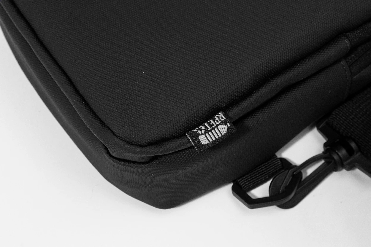 Wodoodporna torba typu sling z RPET, kieszeniami zapinanymi na zamek, zapięciem na klamrę i wyściełanym tyłem. Z regulowanym paskiem na ramię z możliwością regulacji na lewą i prawą stronę. Wykonana z poliestru 600D RPET powlekanego poliuretanem, z charakterystyczną metką RPET.
