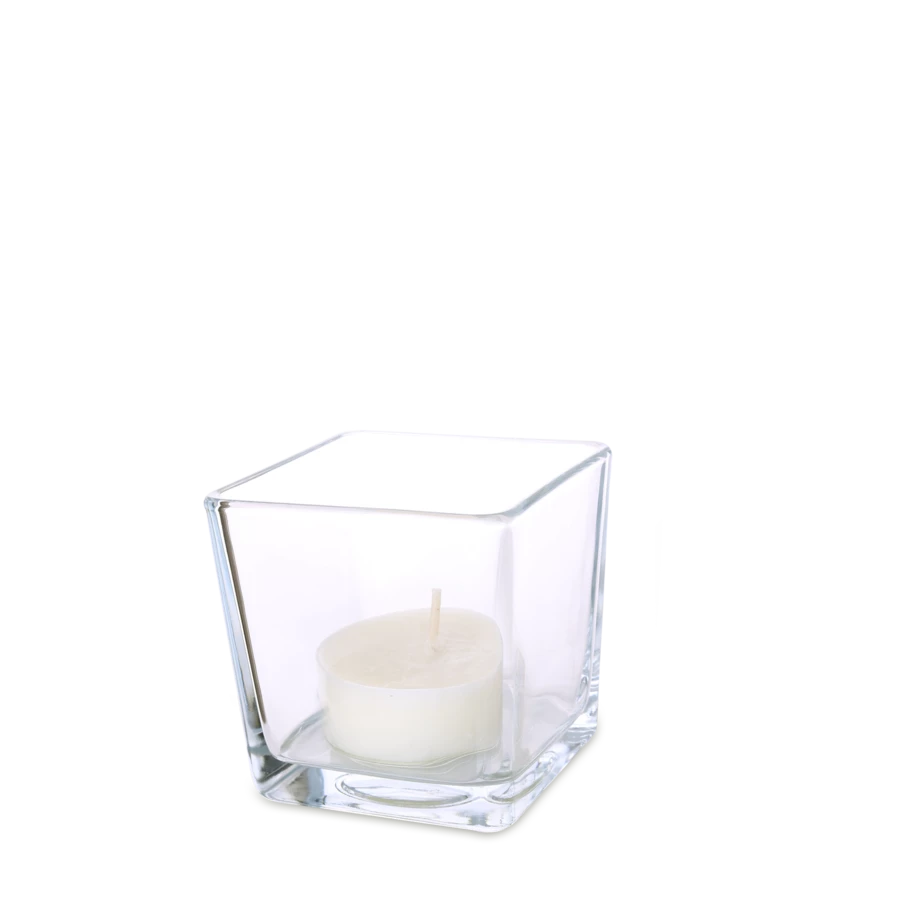 Lampion o modnym kształcie sześciana. Występuje w dwóch wariantach pojemności. Posiada wkład w postaci tealight’a z wosku sojowego, który jest naturalny i bezpieczny oraz nie wydziela szkodliwych substancji podczas spalania.