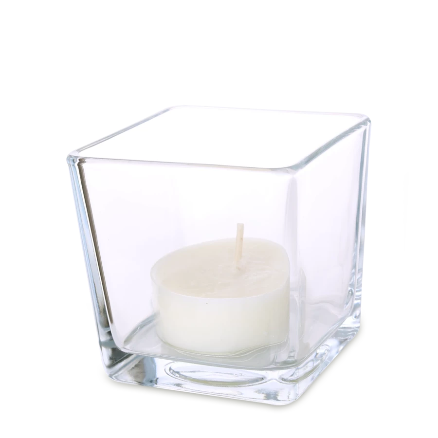 Lampion o modnym kształcie sześciana. Występuje w dwóch wariantach pojemności. Posiada wkład w postaci tealight’a z wosku sojowego, który jest naturalny i bezpieczny oraz nie wydziela szkodliwych substancji podczas spalania.