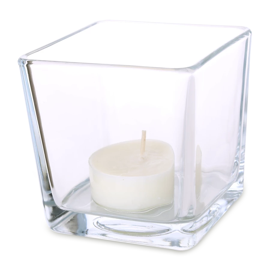 Lampion o modnym kształcie sześciana. Występuje w dwóch wariantach pojemności. Posiada wkład w postaci tealight’a z wosku sojowego, który jest naturalny i bezpieczny oraz nie wydziela szkodliwych substancji podczas spalania.