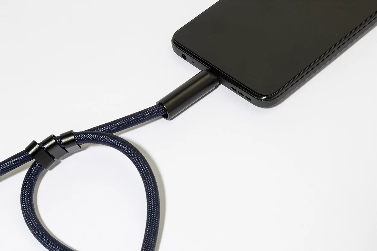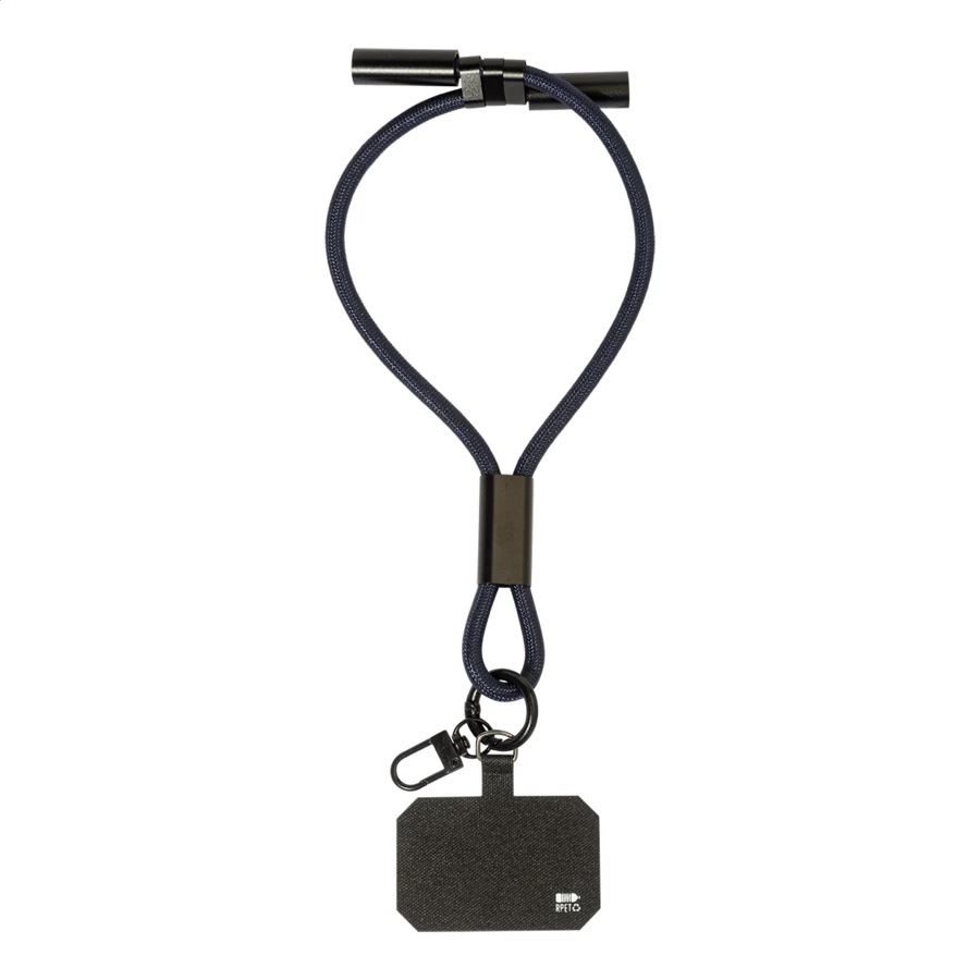 CuffCharge smycz na nadgarstek, uchwyt na telefon, kabel 60W RPET - ciemno niebieski (NAD-AP864134-06A)
