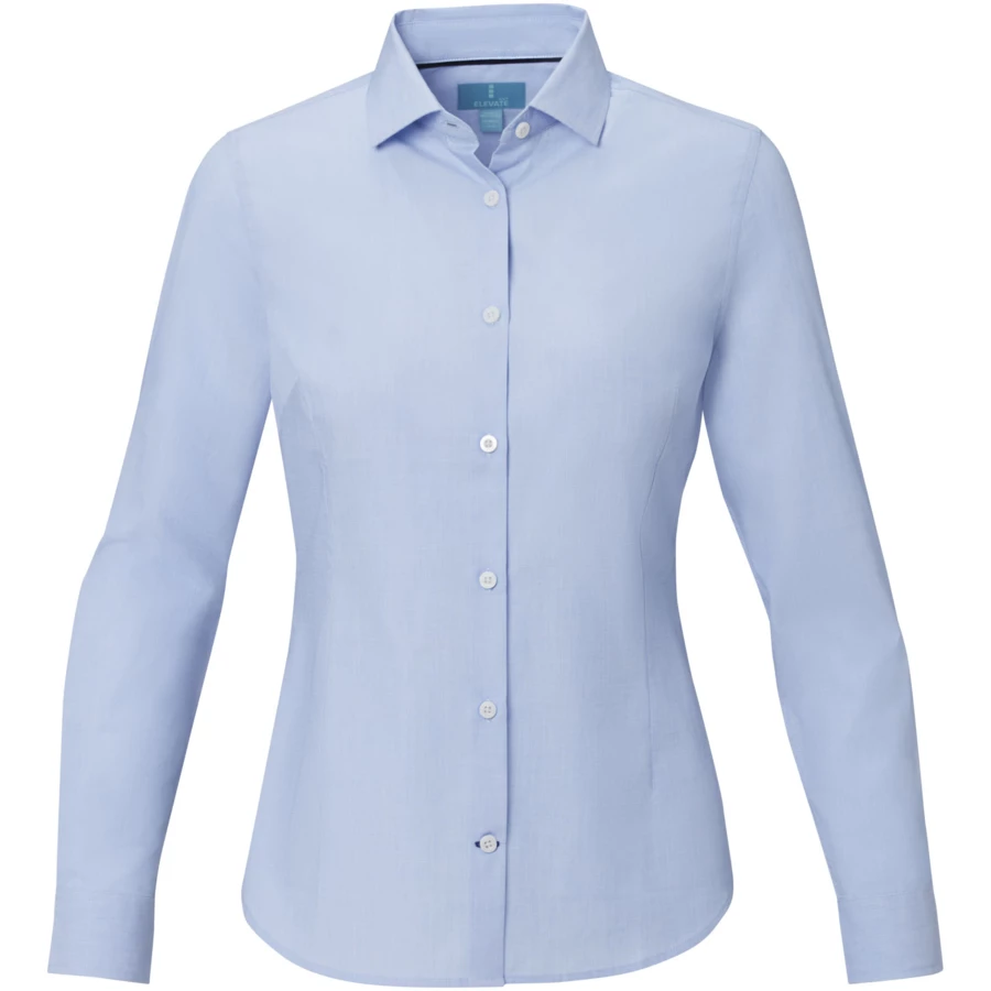 Damska koszula z długim rękawem marki Cuprite to zrównoważony i stylowy wybór. Wykonana z popeliny z bawełny organicznej, łączy etyczną produkcję z wyjątkowym komfortem. Posiada częściowo rozkloszowany kołnierzyk, który zapewnia swobodny i uniwersalny wygląd. Kontrastowe szwy na plisie rękawów i dolnej dziurce na guziki dodają subtelnego stylu. Koszula ma dopasowany krój, który podkreśla kobiecą sylwetkę.