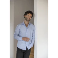 Koszula męska Cuprite z długim rękawem z bawełny organicznej – zrównoważony i stylowy wybór. Wykonana z popeliny z bawełny organicznej, łączy etyczną produkcję z wyjątkowym komfortem. Posiada częściowo rozkloszowany kołnierzyk, który zapewnia bardziej swobodny i wszechstronny wygląd. Kontrastowe szwy na plisie rękawów i dolnej dziurce na guziki dodają subtelnego stylu. To naprawdę świadomy ekologicznie wybór.