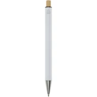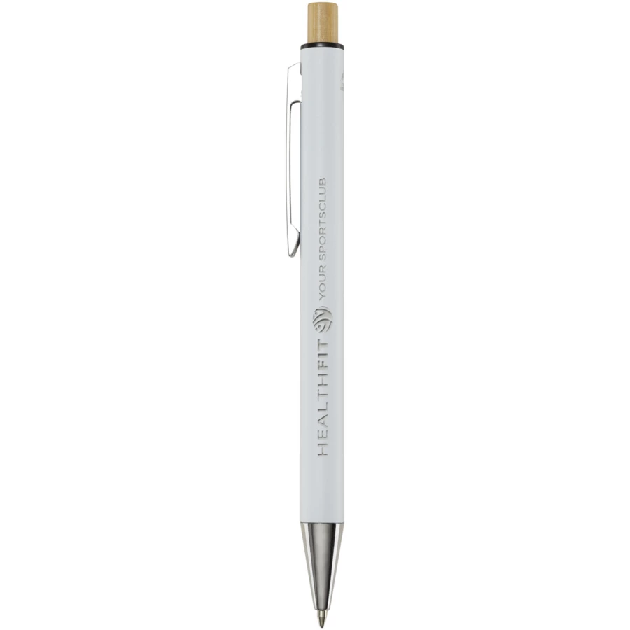 Cyrus długopis wykonany z aluminium pochodzącego z recyklingu, którego produkcja wymaga mniej energii niż w przypadku aluminium wyprodukowanego z surowców. Ogranicza również ilość odpadów na wysypiskach śmieci i pomaga chronić zasoby naturalne w celu zmniejszenia emisji gazów cieplarnianych. Przycisk jest wykonany z bambusa. Kolor tuszu: Czarny. Żywotność: 800 metrów. Rozmiar stalówki: 1,00 mm.