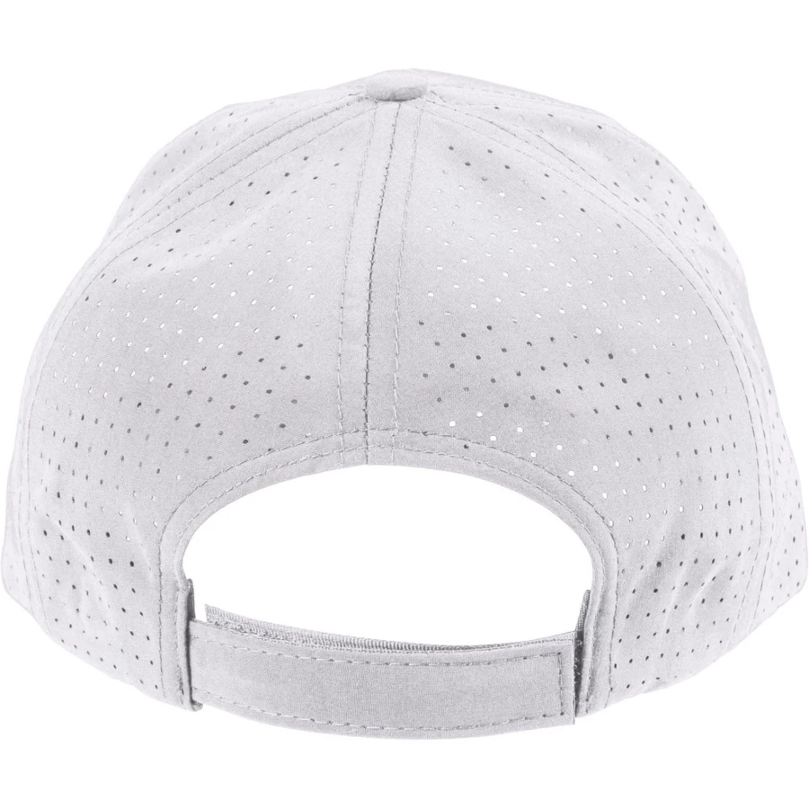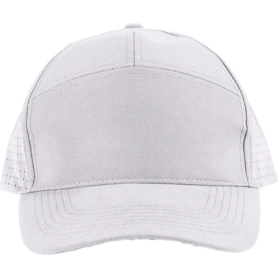 Czapka z daszkiem z laserowo wyciętymi otworami wentylacyjnymi na tylnych panelach, posiada 7-panelową konstrukcję z jednym panelem z przodu oraz daszek o długości 7 cm, regulowana i oddychająca, bez etykiety PU, produkt wykonany z poliestru