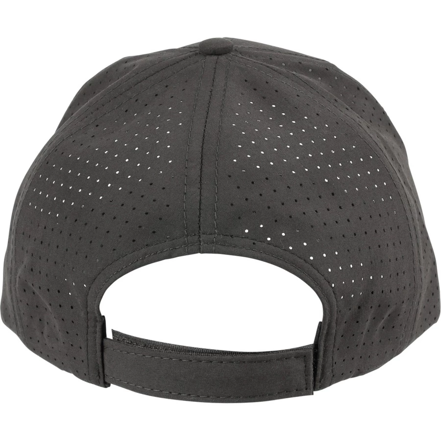 Czapka z daszkiem z laserowo wyciętymi otworami wentylacyjnymi na tylnych panelach, posiada 7-panelową konstrukcję z jednym panelem z przodu oraz daszek o długości 7 cm, regulowana i oddychająca, bez etykiety PU, produkt wykonany z poliestru
