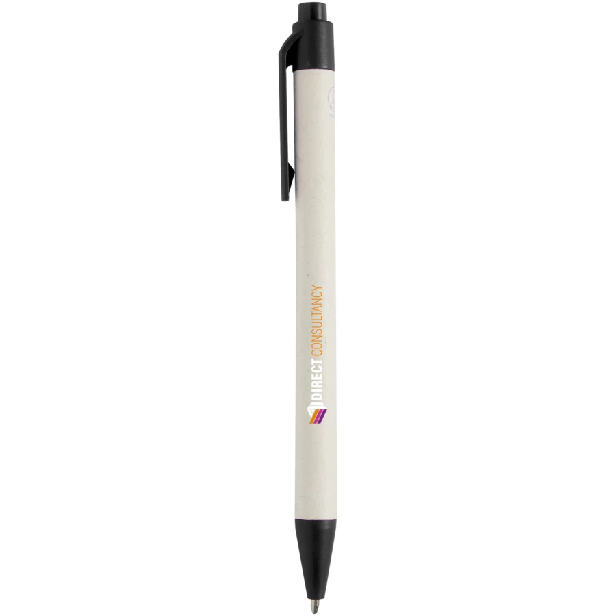Długopis na przycisk z korpusem wykonanym z poddanych recyklingowi kartonów po mleku (do 70%). Przycisk, klips i końcówka są wykonane z tworzywa sztucznego PLA. Zużyte kartony po mleku są zbierane, sortowane, przetwarzane i zamieniane w papier, co pozwala na przekształcenie odpadów w coś użytecznego.