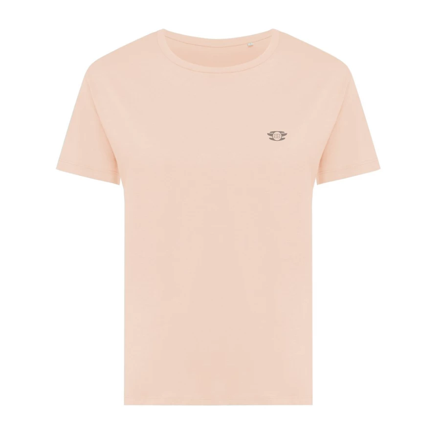 Koszulka damska, regularny krój, okrągły dekolt, krótkie rękawy, wykonana w 30% z bawełny z recyklingu i w 70% z bawełny organicznej o gramaturze 160 g/m2, posiada wbudowany znacznik AWARE™, który potwierdza wykorzystanie materiałów z recyklingu, posiada kod QR na metce, który prowadzi do cyfrowego paszportu produktu, 2% wpływów z każdego sprzedanego produktu z kolekcji Impact jest przekazywane na rzecz Water.org, ślad węglowy produktu: 3,14 kg CO2