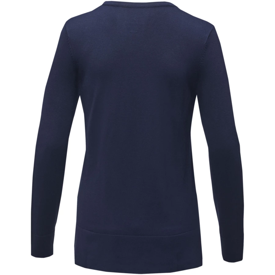 Damski sweter Stanton z dekoltem w serek to idealne połączenie wyrafinowania i klasycznego kroju z dekoltem w serek. Płaski ściągacz przy kołnierzu, mankietach i u dołu bluzy nie tylko podnosi jej walory estetyczne, ale także zapewnia długotrwały komfort noszenia. Wykonany z mieszanki wiskozy i nylonu w płaskiej dzianinie o grubości 12, ten sweter zapewnia idealną równowagę między stylem a funkcjonalnością. Ta cienka dzianina sprawia, że materiał jest gładszy i bardziej wyrafinowany, idealny zarówno na formalne okazje, jak i na co dzień. Sweter ma dopasowany krój zapewniający kobiecy wygląd.