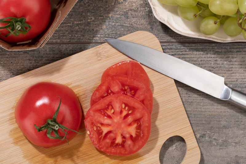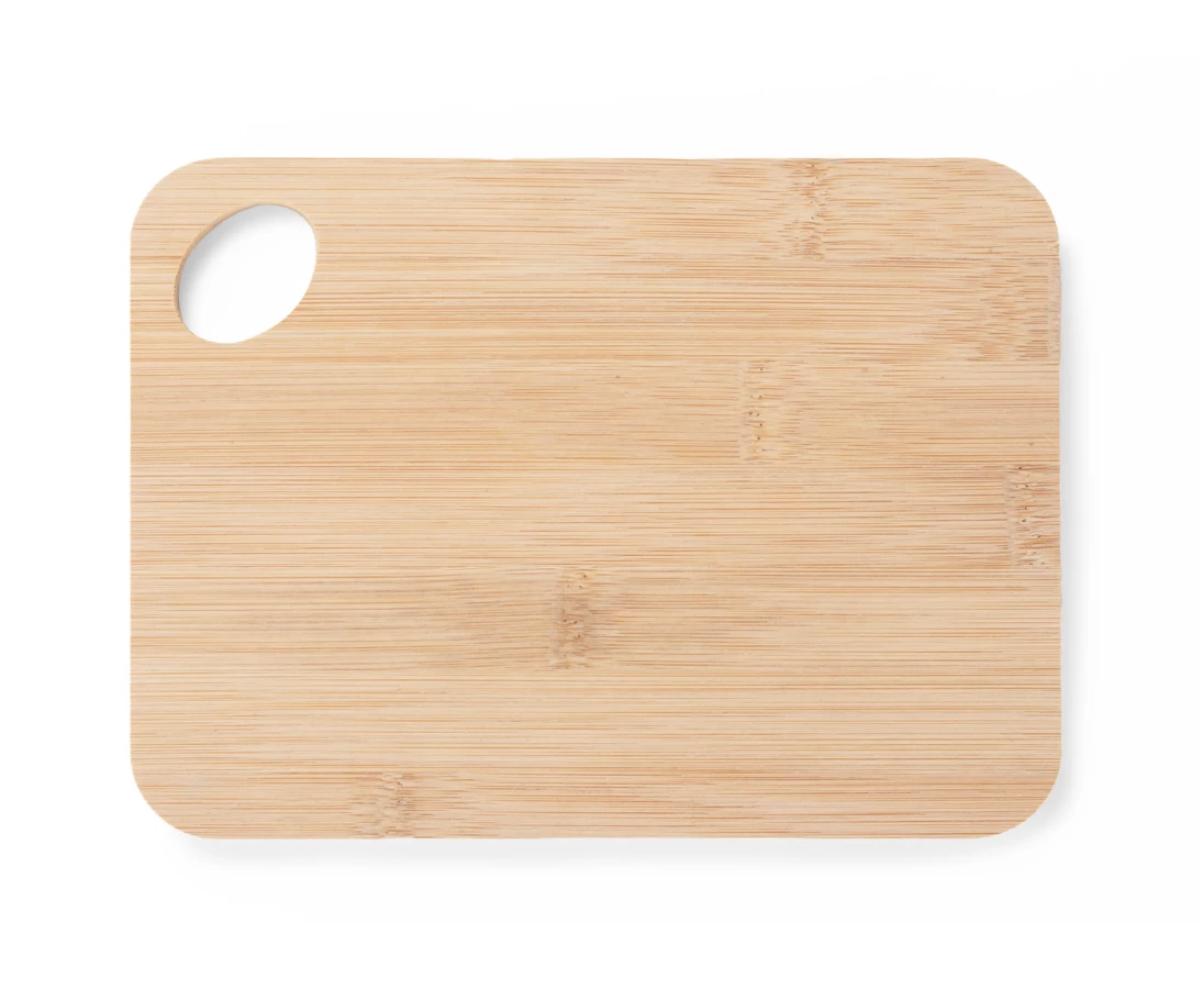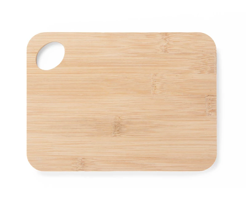 Wysokiej jakości, wygodna deska bambusowa do krojenia warzyw, owoców, pieczywa, wędlin, serów itd. Posiada uchwyt, dzięki któremy możemy ją zawiesić. Elegancki wygląd i praktyczne zastosowanie sprawdzą się w każdej kuchni. Produkt posiada badania dopuszczające do kontaktu z żywnością. Nie zaleca się mycia w zmywarce.