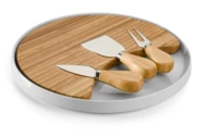 Deska do serów CHEDDAR jest gustownym zestawem do serwowania serów. CHEDDAR jest niezbędnym elementem podczas spotkań przy winie. W zestawie bambusowa deska, ceramiczna podstawka oraz trzy nożyki.