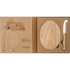 Drewniana deska do serów z nożem wykonanym ze stali nierdzewnej.