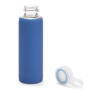 Butelka ze szkła borokrzemowego. Posiada odkręcane wieczko z PP i silikonowy pokrowiec. Pojemność do 380 mL. Dostarczany w pudełku. ø58 x 191 mm