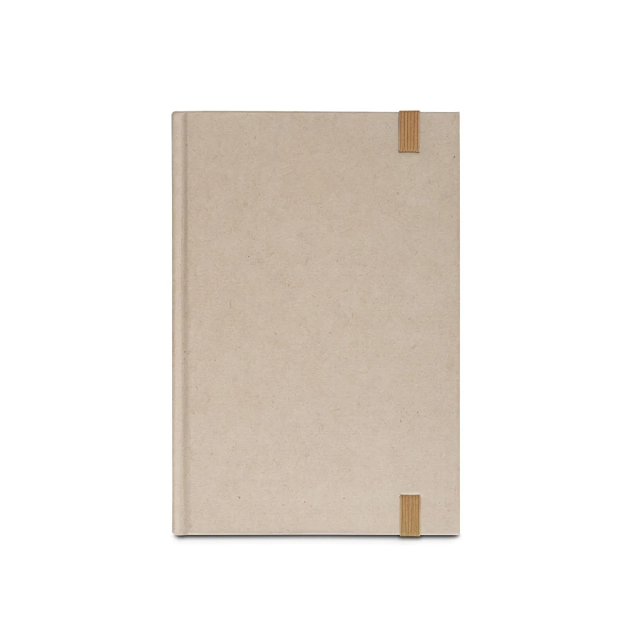 Notatnik A5 w twardej oprawie wykonany z papieru z trzciny cukrowej (80% trzciny cukrowej). Wewnątrz znajduje się 160 kartek w linie wykonanych z papieru z trzciny cukrowej (80% trzciny cukrowej) (90 g/m²), pasek oddzielający i gumka do zamykania notatnika. 147 x 216 mm