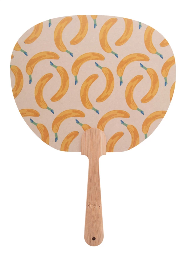 Personalizowany wachlarz z tektury z bambusowym uchwytem. Z nadrukiem cyfrowym po obu stronach. Min. ilość: 100szt.