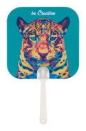 Wachlarz z uchwytem z tworzywa sztucznego i papieru klejonego. Drukowany cyfrowo, dwustronnie. Min. zam.: 100 szt.