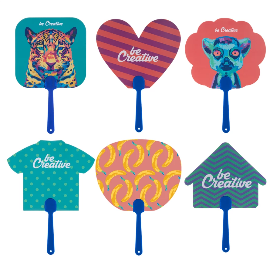 Wachlarz z uchwytem z tworzywa sztucznego i papieru klejonego. Drukowany cyfrowo, dwustronnie. Min. zam.: 100 szt.