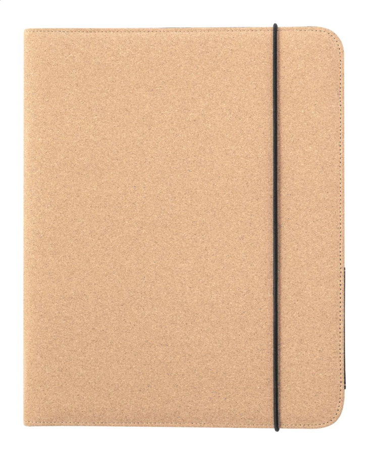 Teczka na dokumenty z naturalnego korka z notatnikiem z 20 kartkami w linie i wieloma wewnętrznymi kieszeniami z organizerem.