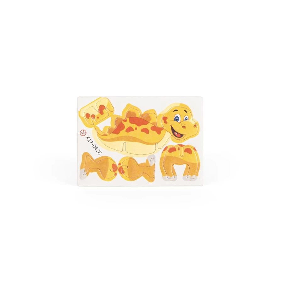 Puzzle 3D z EVA w kształcie dinozaura. Idealne do stymulowania dzieci podczas zabawy w układanie prostych, edukacyjnych puzzli. Dostarczane z 3 elementami w papierowej kopercie. 90 mm