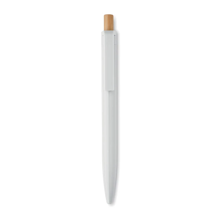 Długopis z bambusowym przyciskiem wykonany z ABS pochodzącego z recyklingu. Niebieski tusz.
