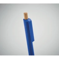 Długopis z bambusowym przyciskiem wykonany z ABS pochodzącego z recyklingu. Niebieski tusz.