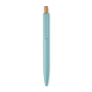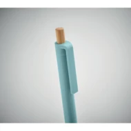 Długopis z bambusowym przyciskiem wykonany z ABS pochodzącego z recyklingu. Niebieski tusz.