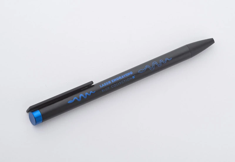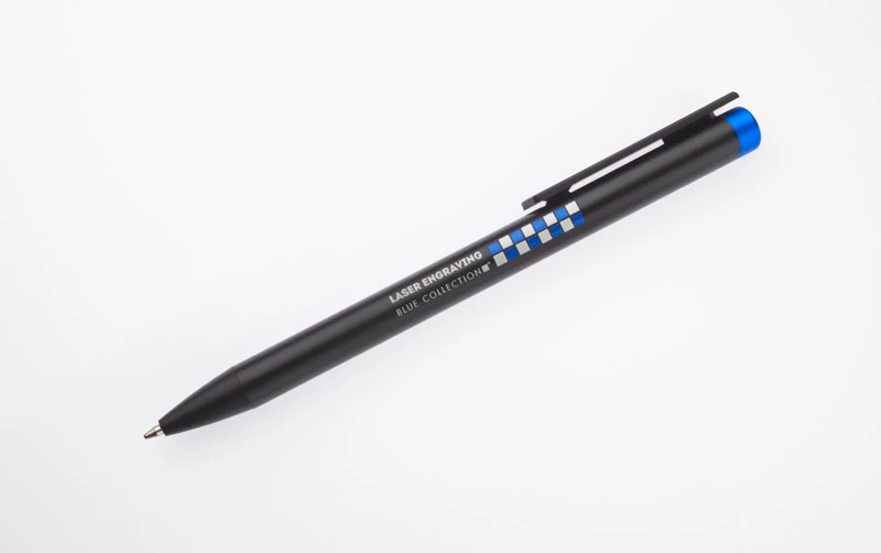 ALI to wyjątkowy długopis umożliwiający wykonanie znakowania w kolorze zbliżonym do końcówki długopisu oraz całkowicie zaskakującego grawerowania w dwóch kolorach - w kolorze zbliżonym do końcówki długopisu oraz białym (kolor aluminium). Czarny metalowy korpus oraz czarne wykończenia stanowią idealne tło dla kolorowego grawerowania. Długopis automatyczny. Wkład typu X20 o grubości 1.0 mm w kolorze niebieskim.