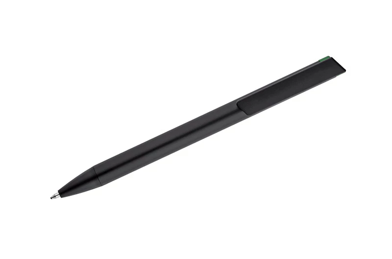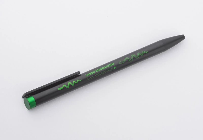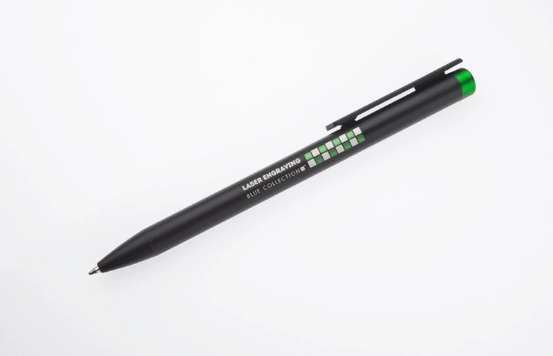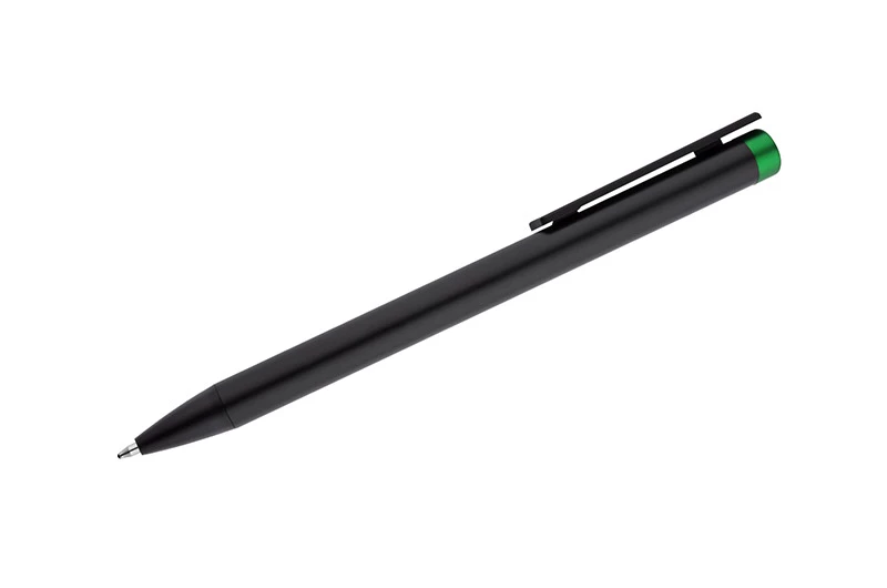 ALI to wyjątkowy długopis umożliwiający wykonanie znakowania w kolorze zbliżonym do końcówki długopisu oraz całkowicie zaskakującego grawerowania w dwóch kolorach - w kolorze zbliżonym do końcówki długopisu oraz białym (kolor aluminium). Czarny metalowy korpus oraz czarne wykończenia stanowią idealne tło dla kolorowego grawerowania. Długopis automatyczny. Wkład typu X20 o grubości 1.0 mm w kolorze niebieskim.