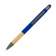 Długopis z bambusowym akcentem, wyposażony w końcówkę do ekranów dotykowych. Idealny do pisania i nawigacji na urządzeniach mobilnych. Wkład w kolorze niebieskim.